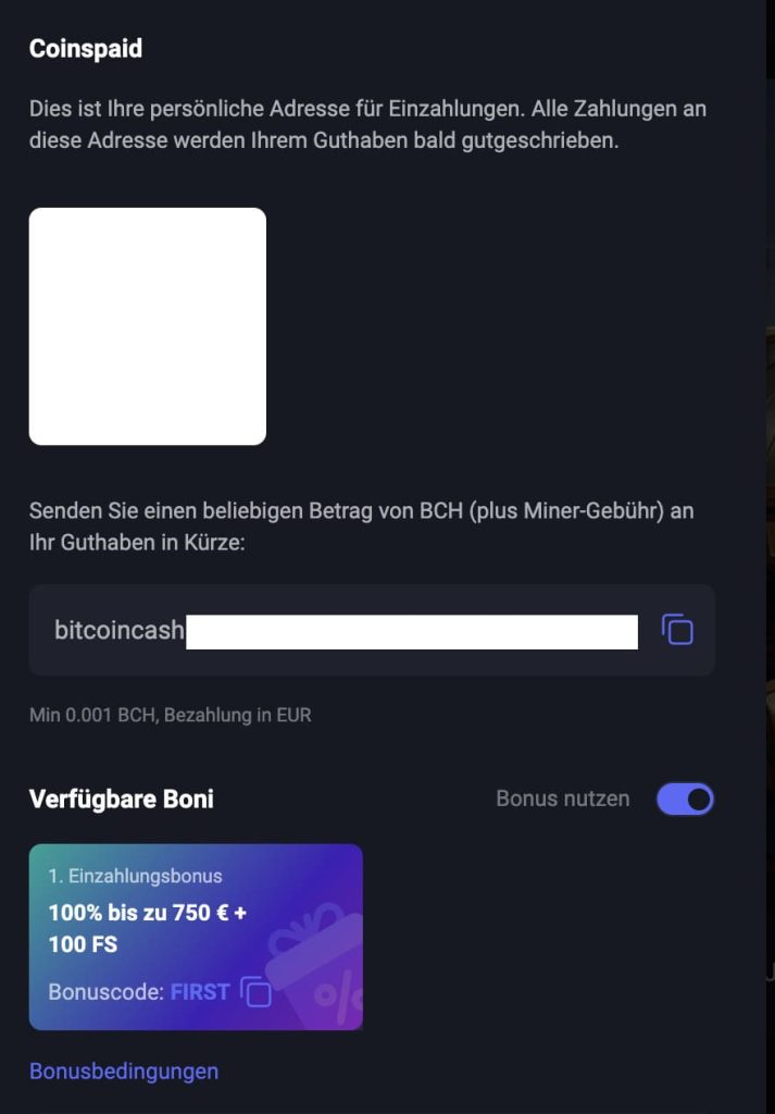 Wie man eine Einzahlung mit Kryptowährungen vornimmt: Bitcoin, Ethereum, USDT, Dogecoin, Litecoin, Bitcoin Cash