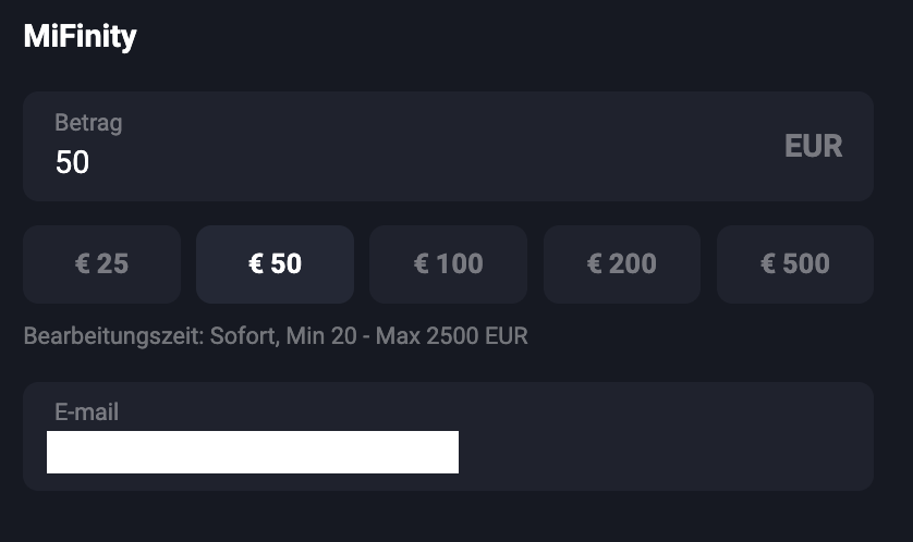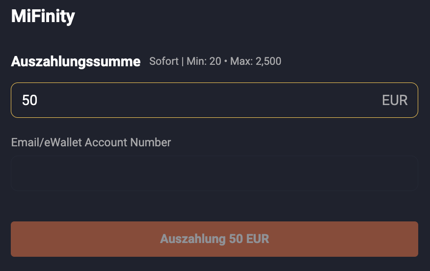 | MiFinity | E-wallet | Kostenlos | Sofort | 20 EUR |